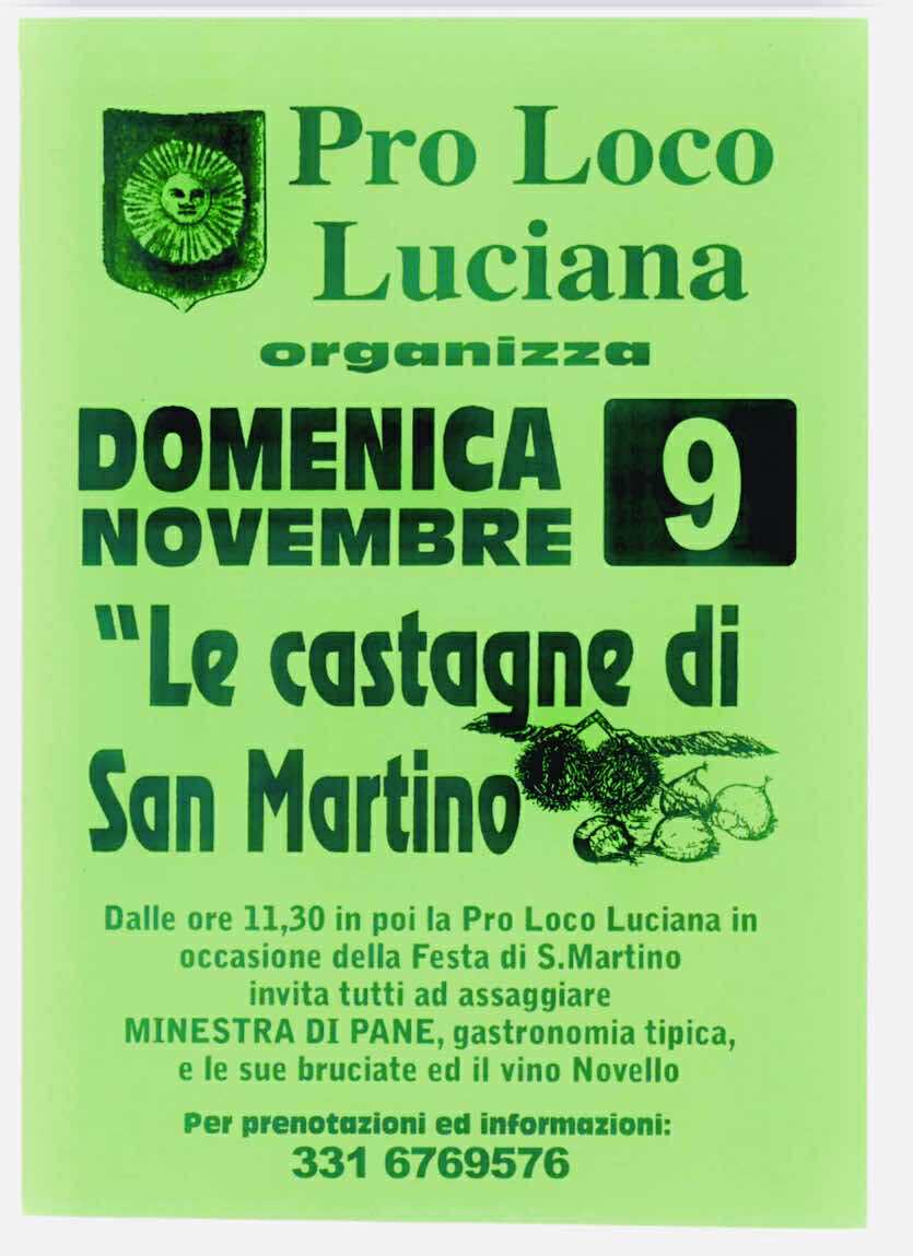 Domenica 9 novembre la Pro Loco Luciana, presso lo spazio polifunzionale Del Morbido, organizza